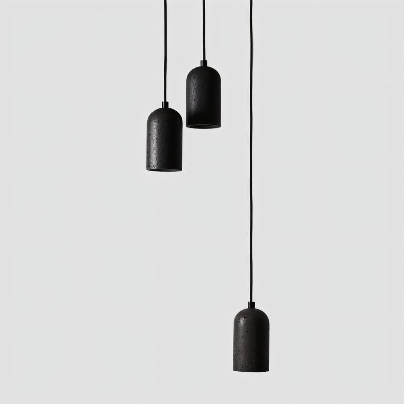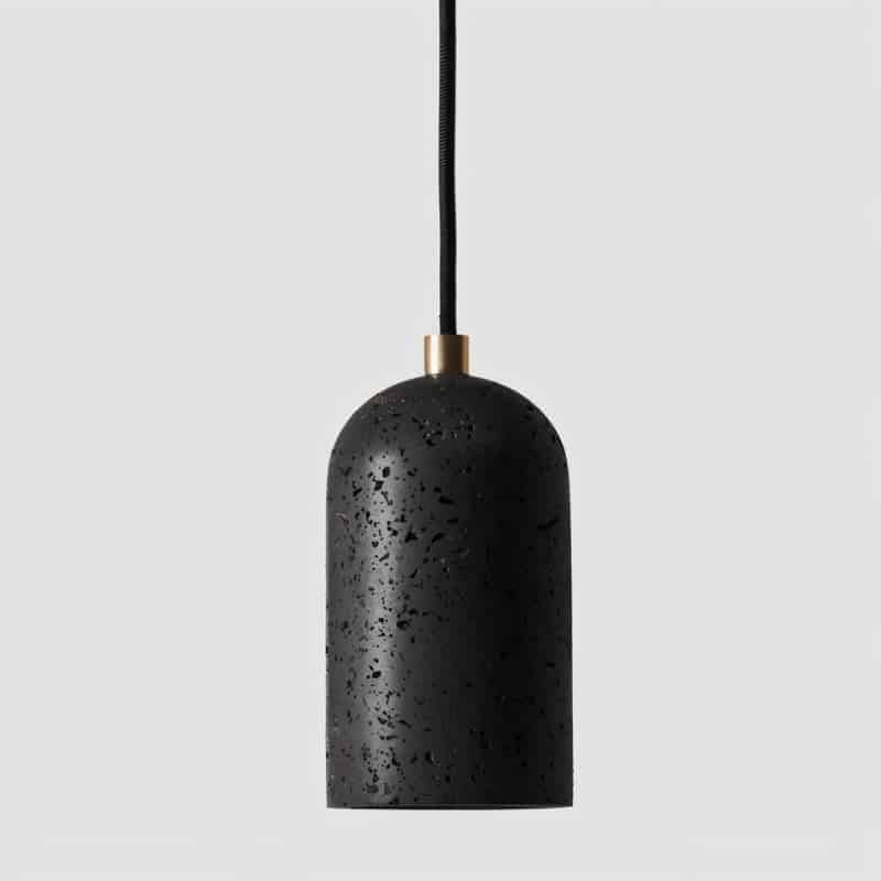 The Verve Pendant Light is a striking light fixture crafted from black travertine, showcasing a natural, textured surface that adds sophistication and depth. Its simple cylindrical shape combined with the dark stone creates a modern yet earthy aesthetic, making it an ideal choice for contemporary interiors.