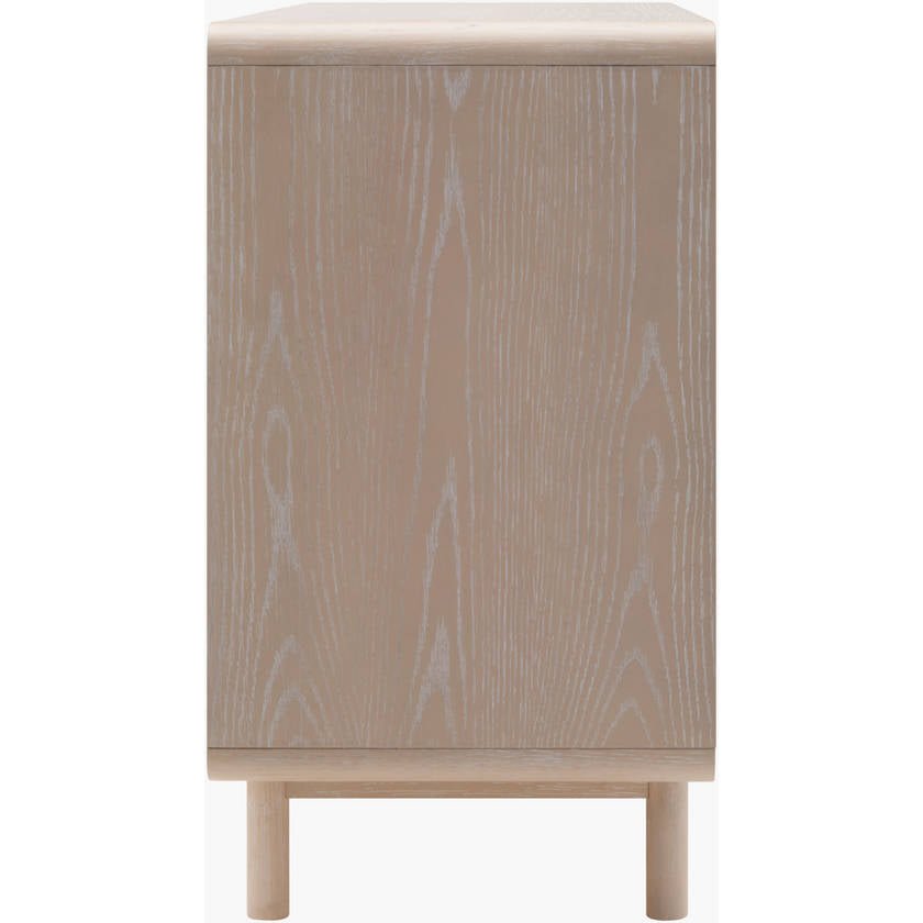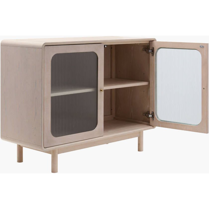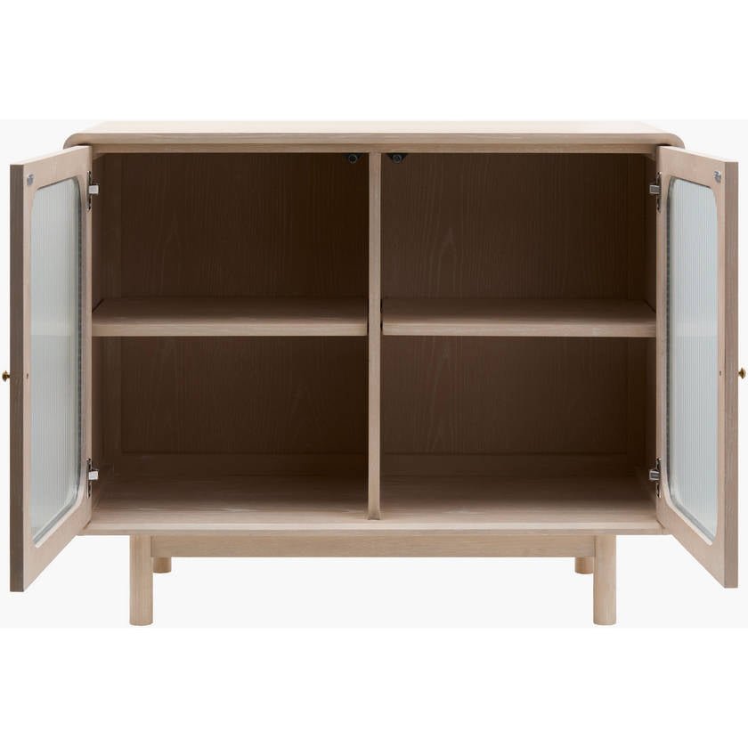 Introducing the Vienne Cabinet, a stunning addition to your home that brings the timeless elegance of Mid-Century Modern style right into your living space. Expertly crafted with a combination of oak veneer, MDF, and glass on top, and resting on a solid oak base, this piece is not only aesthetically pleasing but built to last. The Vienne Cabinet offers a practical yet stylish storage solution that blends seamlessly into any room decor. Care for this exquisite piece is effortless; simply wipe clean with a dry cloth and avoid harsh cleaners to maintain its sophisticated finish. Elevate your home with the chic simplicity of the Vienne Cabinet, where functionality meets artful design.