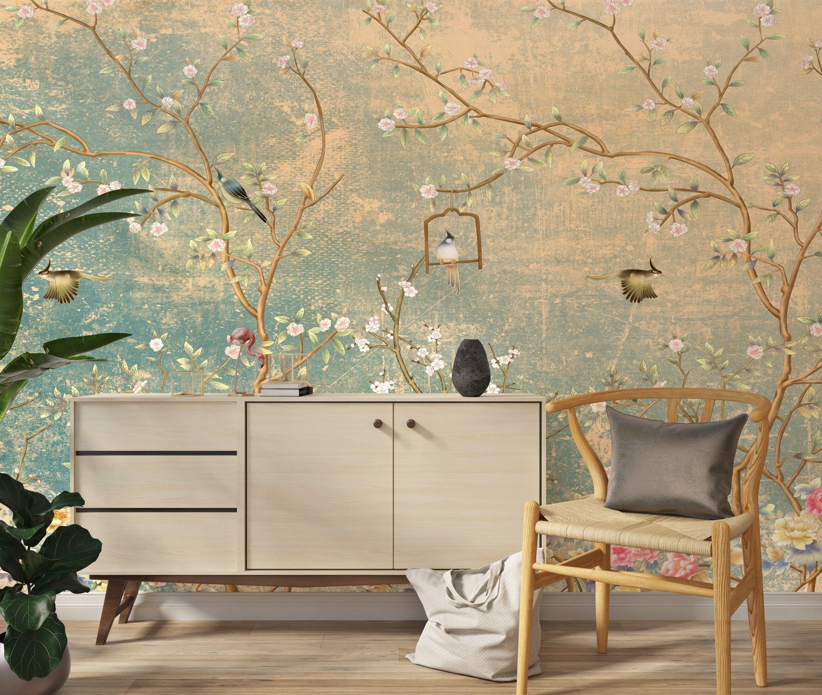 Transform your space with our Vintage Florals on Grunge Chinoiserie Peel and Stick Wallpaper. This unique design combines timeless floral patterns with a grunge aesthetic, perfect for adding an elegant yet edgy touch to any room. Easy to apply and remove, our high quality peel and stick wallpaper is ideal for both renters and homeowners looking to update their wall decor effortlessly.