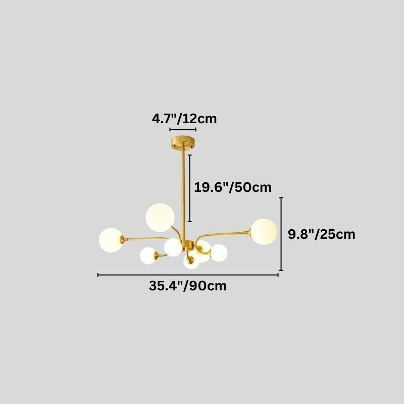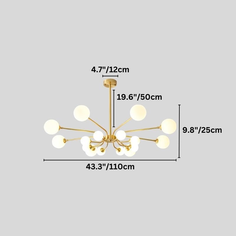 The Volyn Chandelier is a striking modern light fixture crafted from durable copper and frosted glass. Its minimalist arms branch into 8, 12, or 16 heads, creating a balanced design ideal for living rooms, dining areas, and lounges. The sleek gold finish enhances its contemporary aesthetic, making it a statement piece for high-ceiling spaces.