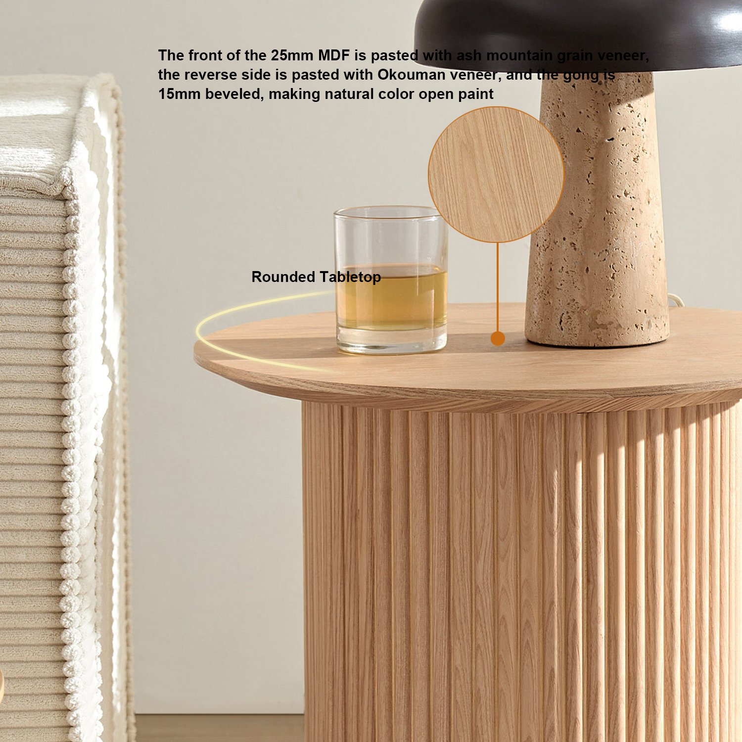Tambour Round Fluted End Table, Small Accent Table for Living Room.