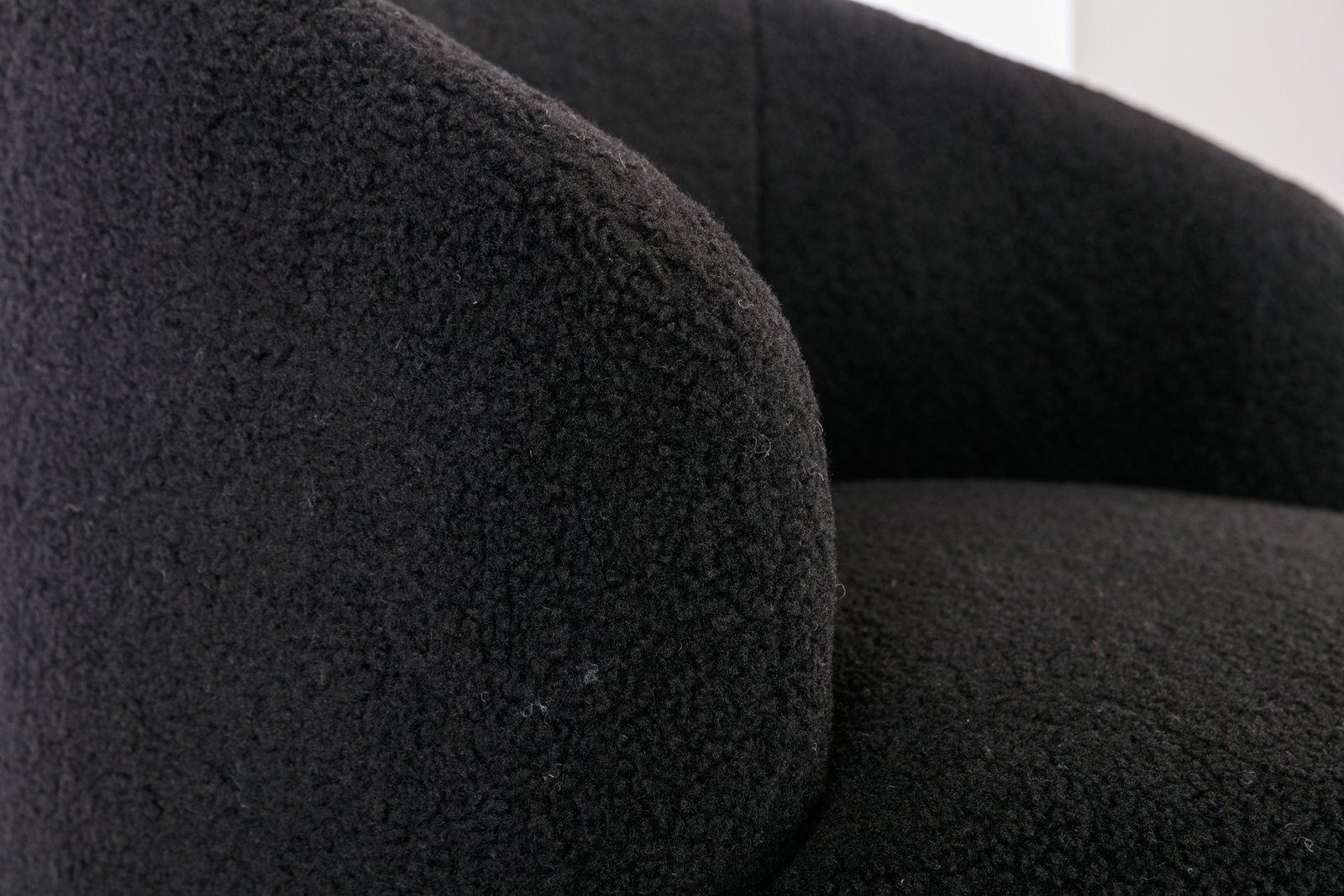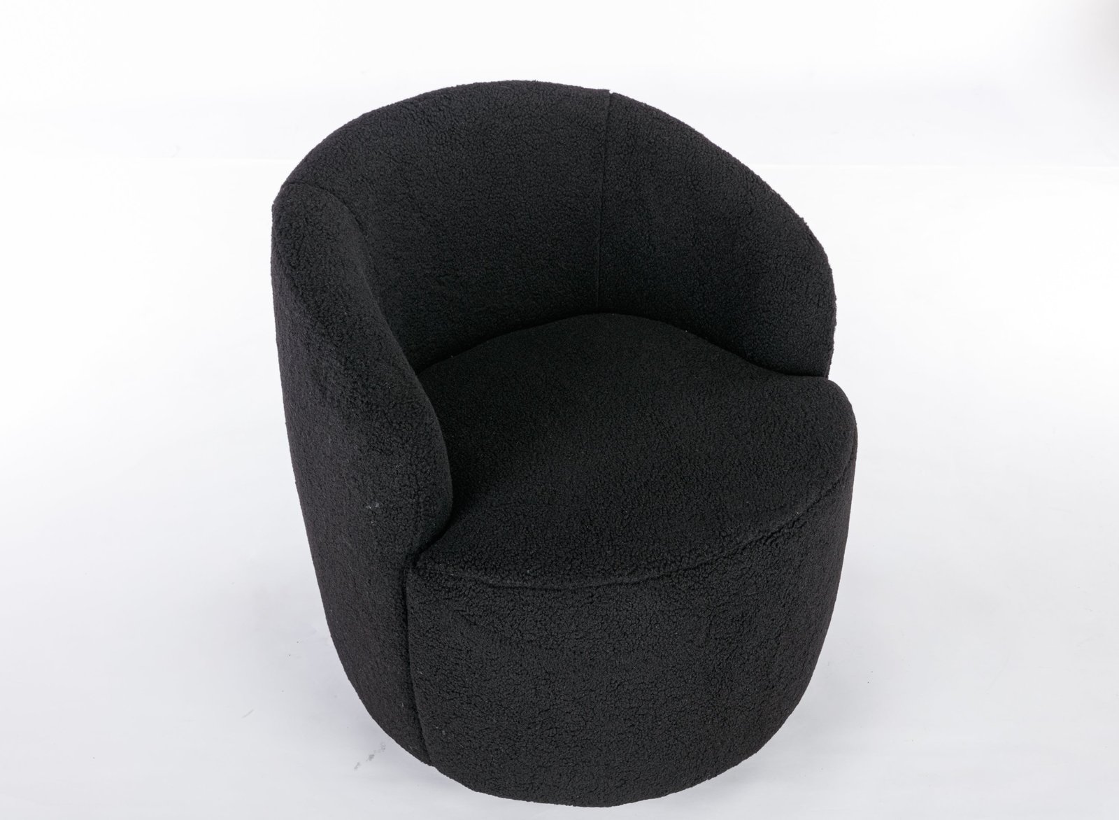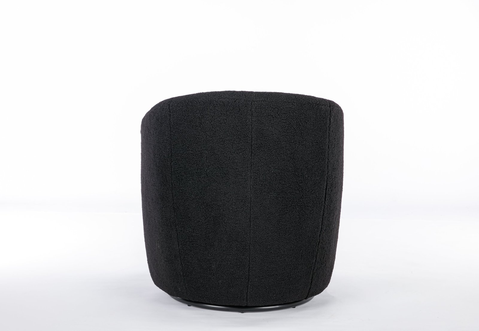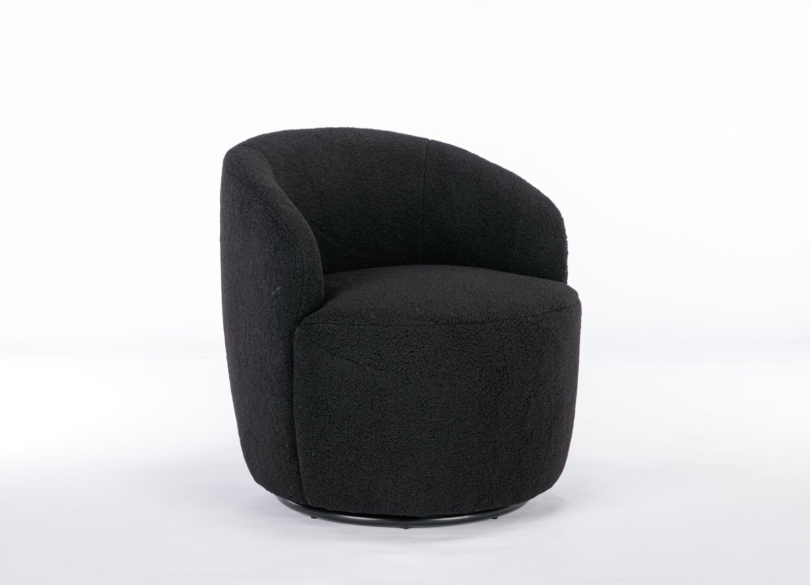Teddy Fabric Swivel Accent Armchair Barrel Chair With Black Powder Coating Metal Ring, Black