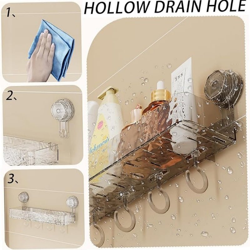 🔥 Hot Sale 50% OFF 🔥Wall Mounted Removable Suction Cup Shelf with Hooks