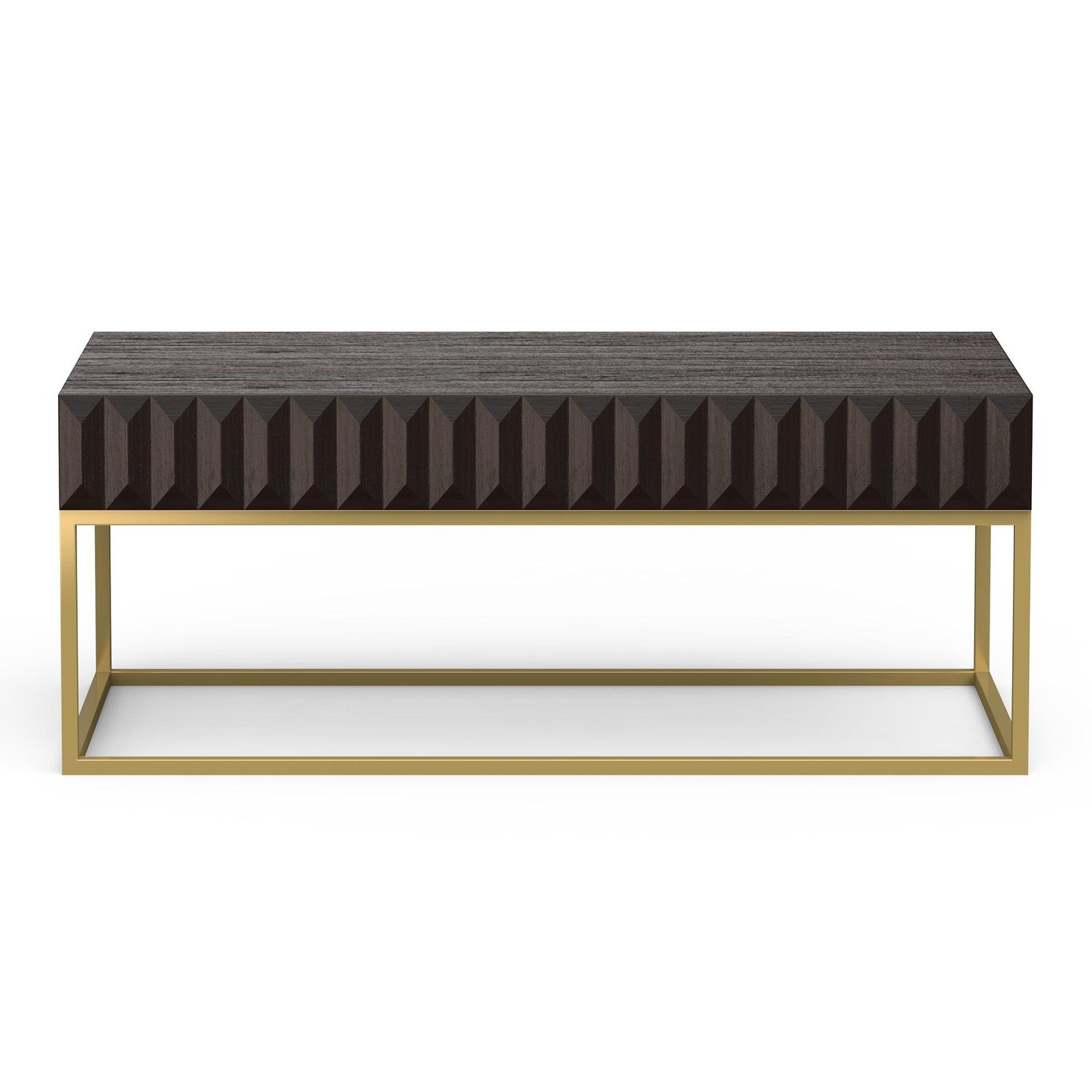 Be the first to review “Walnut/Gold Textured Front Panels Coffee Table with Concealed Drawers”
