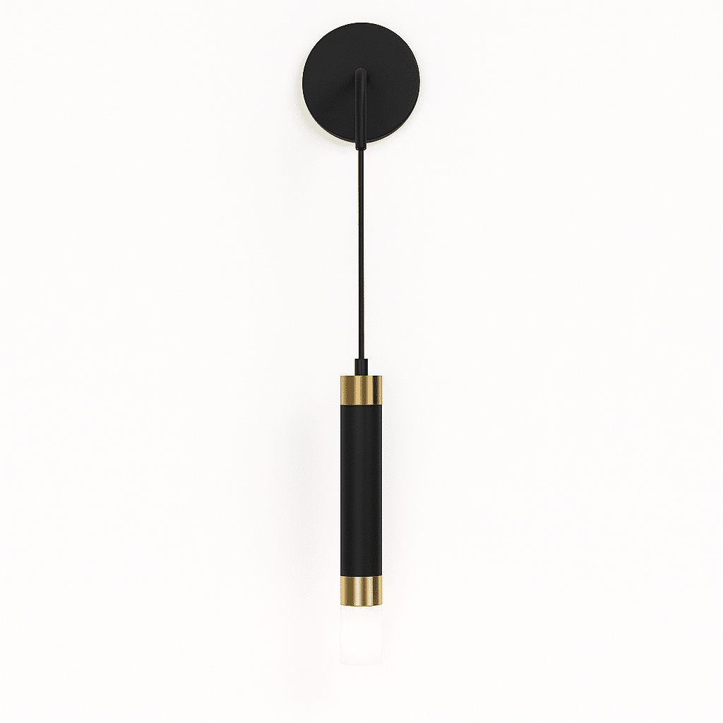 Washni Wall Lamp is made with an aluminium body and acrylic lampshade. The pendant hangs from the wall on an adjustable cord, available in gold or black. Choose from three styles: without a spotlight, with a right-side spotlight, or with a left-side spotlight. The spotlight can rotate 350 degrees and adjust 90 degrees for precise lighting.