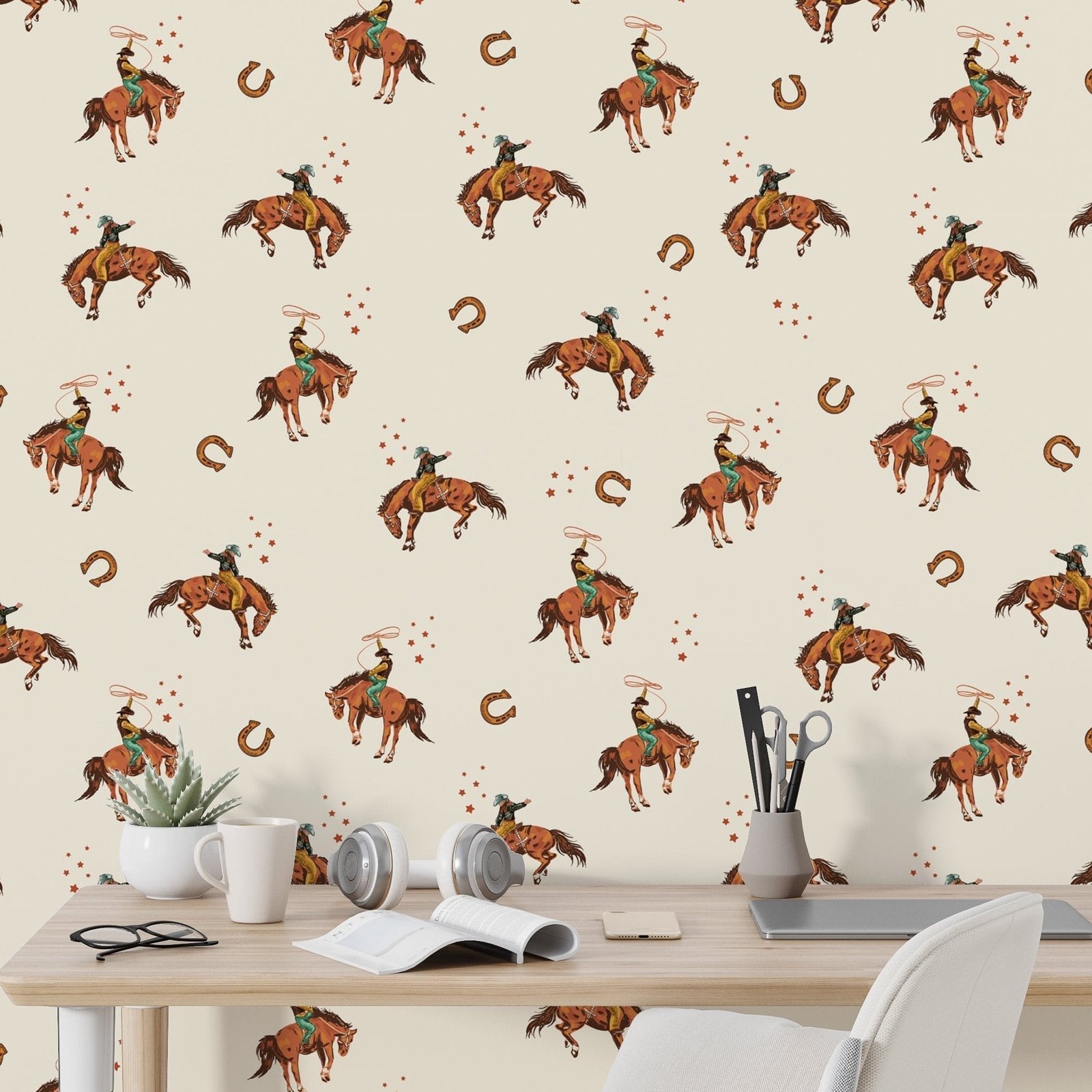 Western Rodeo Wallpaper – Wild West Adventure | Traditional or Peel and Stick Removable