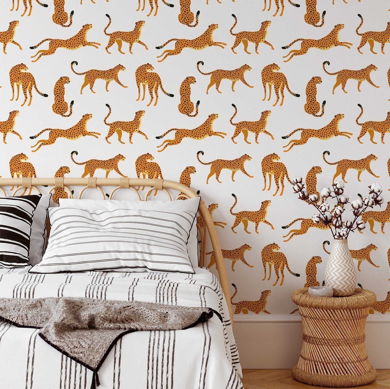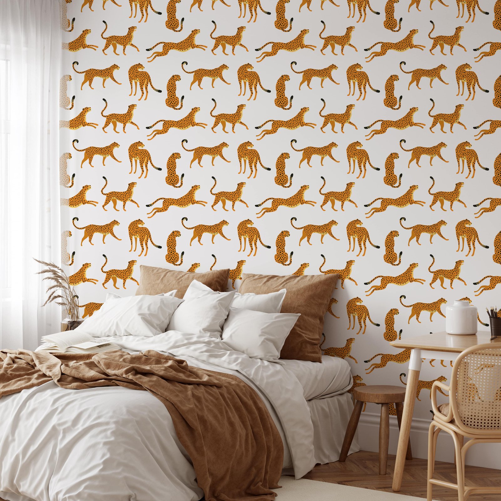 Elevate your home decor with our White Cheetah Animal Print Wallpaper.