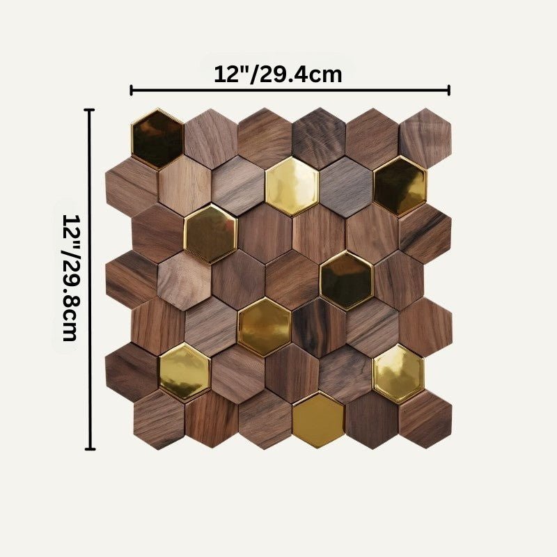 Enhance your home with the Wikne Mosaic Wood Panel. These panels have a stylish hexagon design and are made from high-quality solid wood with natural wood tones. The natural finish adds a modern touch to any room. Easy to install with adhesive and nail gun, they bring a unique and elegant look to your home.