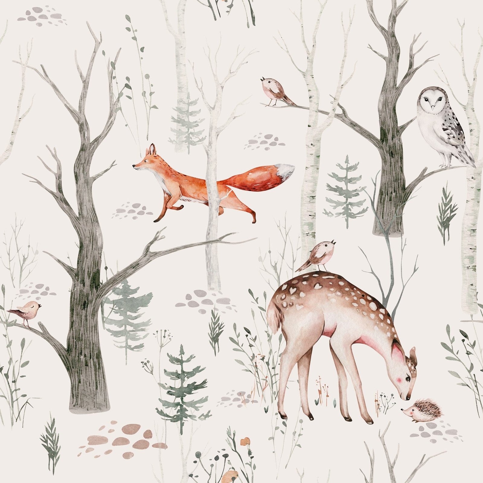 Woodland Forest Animals Wallpaper Mural is the perfect addition to any nursery, bringing the serene beauty of the forest to your child’s room.
