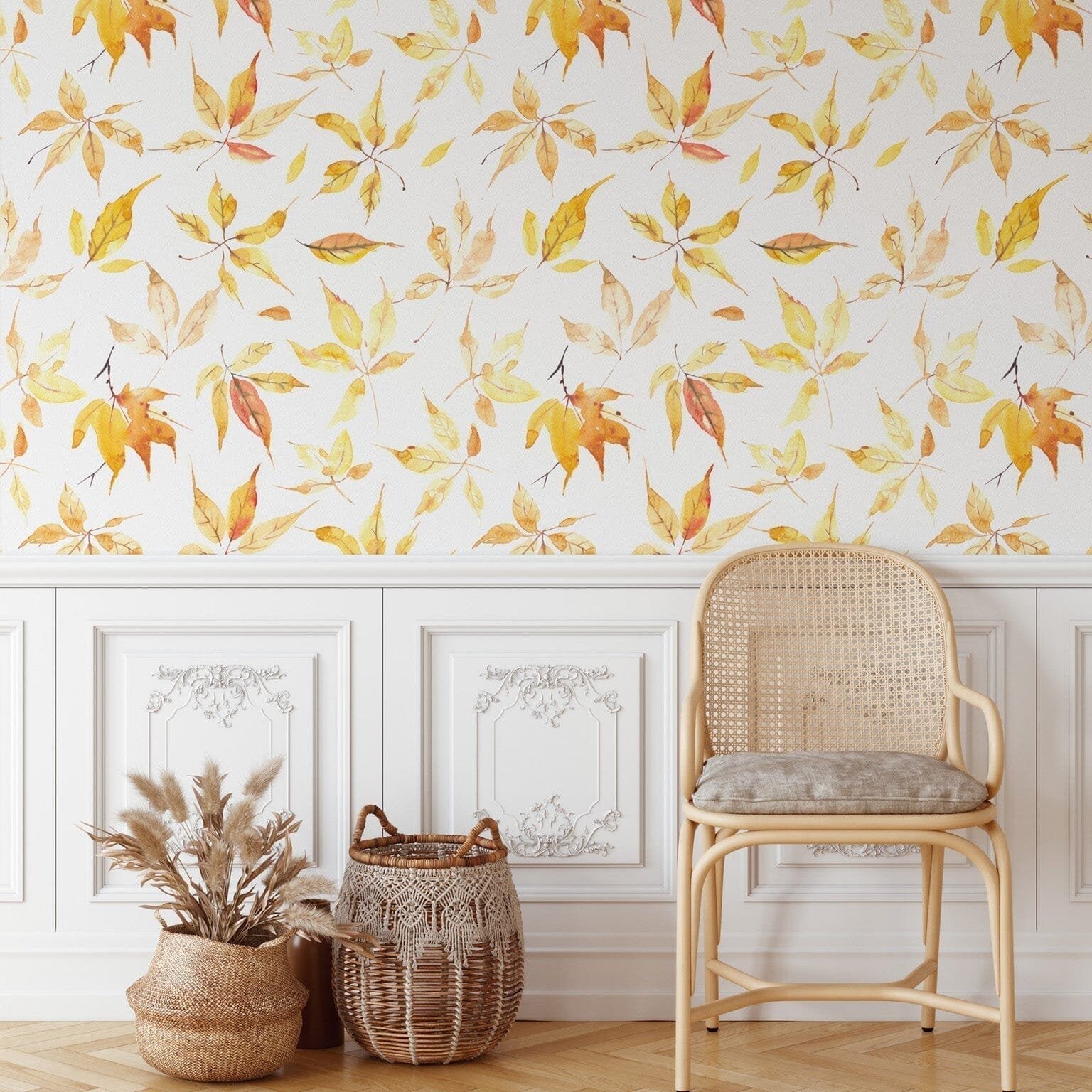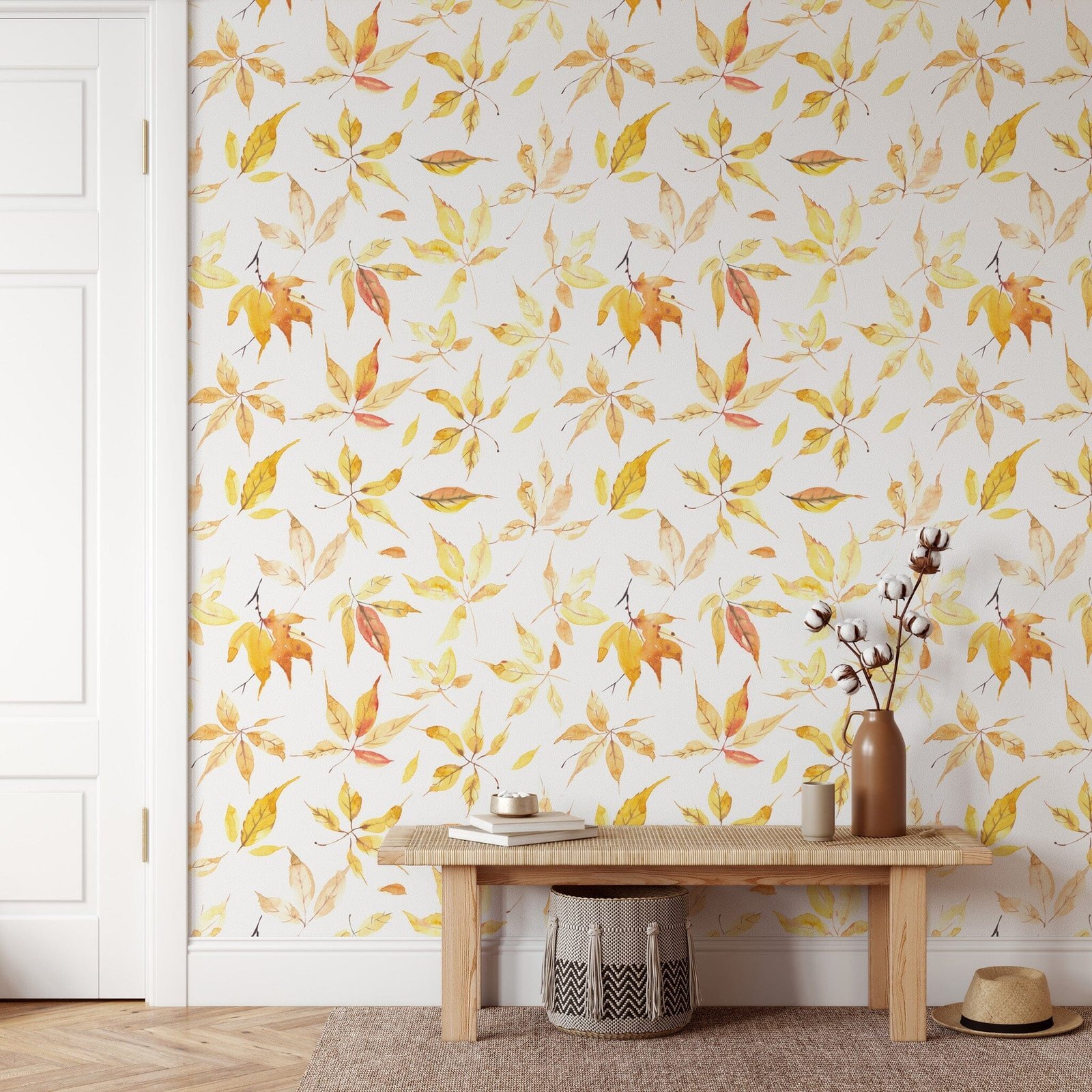 Love the look of fall foliage year-round? Brighten up any room with the Yellow Fall Leaves Wallpaper! Easy to apply and remove, the Peel and Stick wallpaper is perfect for any space. Create a cozy and inviting atmosphere in your home with this seasonal decor!