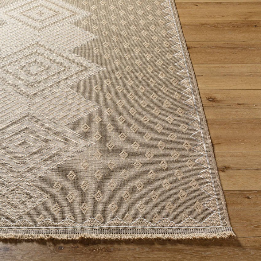 Introducing the “Yuriko” area rug, a stunning addition to any space that effortlessly marries style and durability. Manufactured in Turkey and machine woven with a blend of Jute and Cotton, this rug is designed to withstand high traffic areas while maintaining its aesthetic appeal. This no-pile rug showcases an intricate design framed by charming fringe details, adding a unique touch to your decor. It’s recommended for use with a rug pad for added stability. With maintenance as simple as machine washing in cold water on normal cycle using mild detergent, it?s as practical as it is beautiful. Avoid bleaching or dry cleaning; just tumble dry on medium heat to keep its charm intact.
