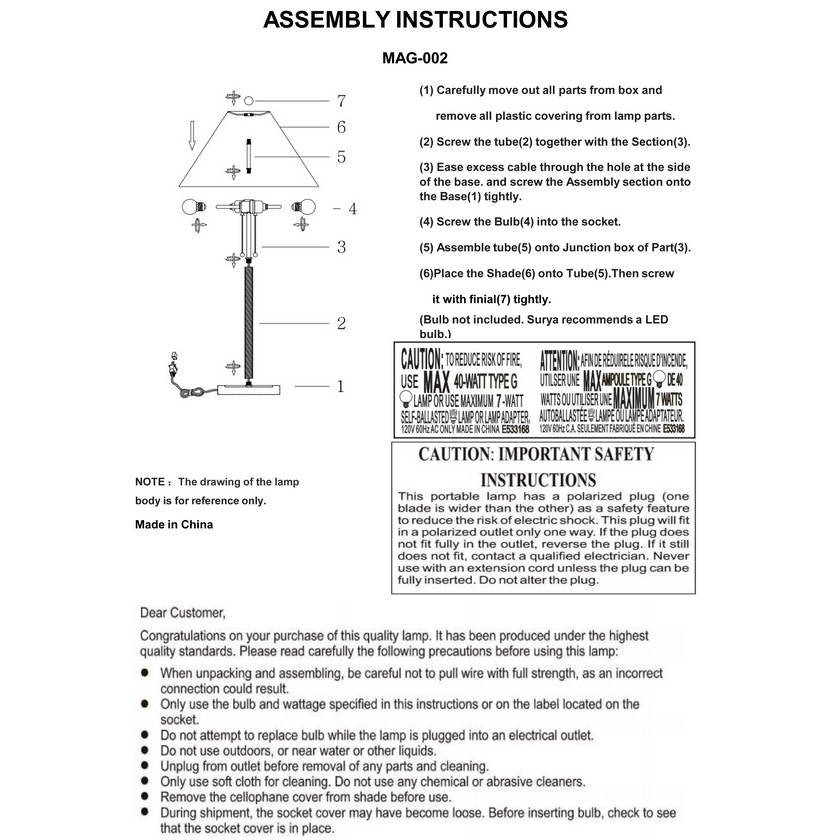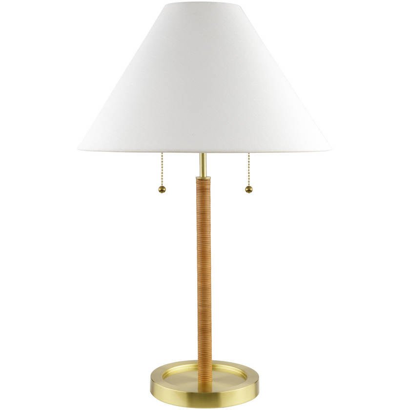 • Colors: Body: Metallic – Brass; Base: Metallic – Brass; Shade: White; Cord: Translucent