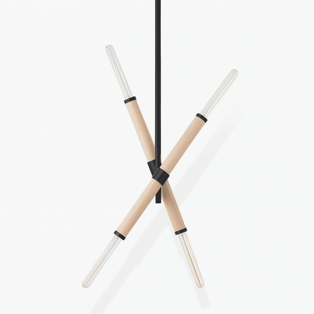 The Zeus Pendant Light is a modern light fixture with a cross-shaped design, crafted from durable iron and accented with natural wood for a sleek yet warm look. Its minimalist style complements Scandinavian, industrial, and contemporary interiors. This light fixture blends functionality with modern elegance, ideal for dining rooms, kitchens, living spaces, or offices.