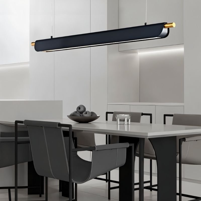 The Zyphos Pendant Light features a sleek, modern design with a tubular metal frame and subtle glass accents. Its elongated form, suspended by thin cables, provides even illumination, making it ideal for dining areas, office spaces, and kitchen islands. Available in three sizes and two colors, this light fixture complements minimalist and contemporary interiors. The combination of metal and glass ensures durability and sophistication. Its streamlined aesthetic enhances both residential and commercial spaces.